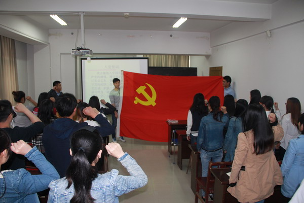 党课结束后,全体毕业班党员面向党旗重温了入党誓词,并签定《党员承诺书》做出庄严的承诺。