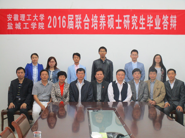 5月28日,我校与盐城工学院联合培养的2016届硕士研究生学位论文答辩会在盐城工学院举行。机械学院副院长张新、王开松,盐城工学院机械工程学院院长周海、副院长许宁与姜大志教授,江苏闳业机械有限公司副总经理马一梓等相关专家以及研究生参加了此次答辩会。
