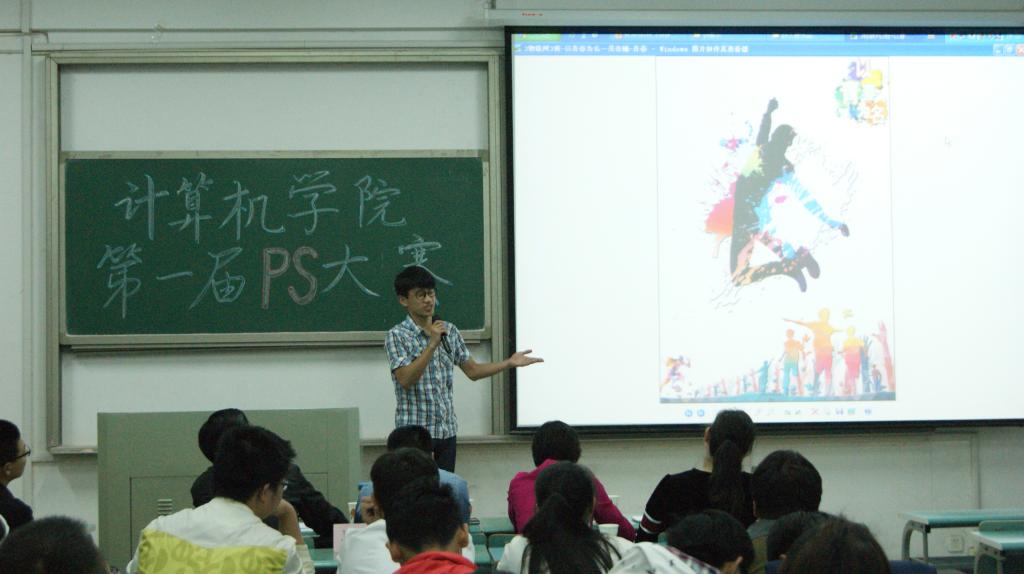 光影世界讲座。5月29日下午,“photoshop的光影世界”讲座在北实201教室举行,学院PS专家张玉老师用诙谐的语言和幽默的配图讲解了“怎样才算是一张好海报”,强调了字体、配色以及构图这三个基本要素在海报制作过程中的重要性,并为同学们介绍了图层的建立、钢笔的使用、选区的方法等基础操作技巧。张玉老师深入浅出的讲解赢得现场同学们的阵阵掌声。