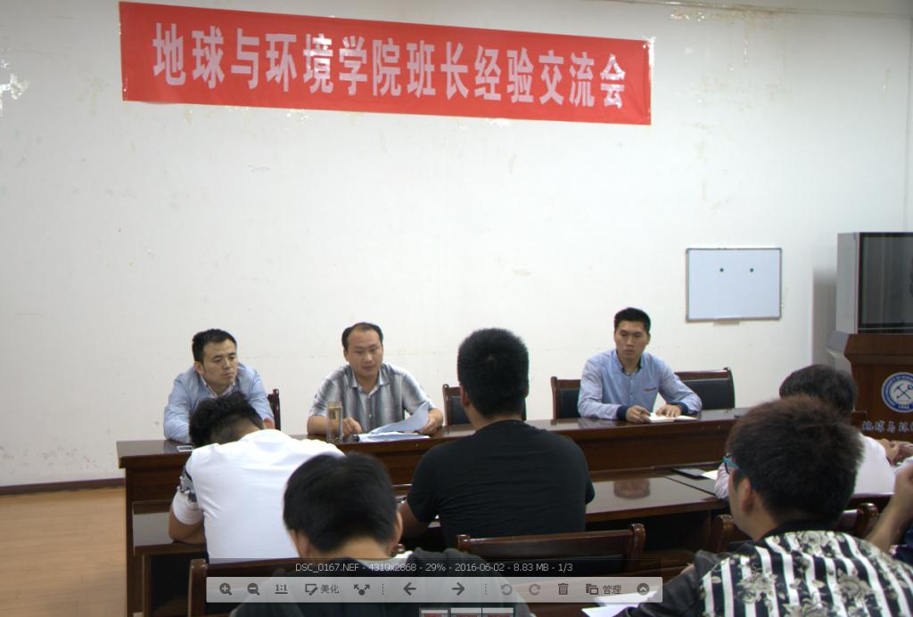 6月2日晚,地球与环境学院在院201会议室举办班长工作经验交流会,学院张文涛老师、2012级优秀班长车文博与张国路为学院一、二、三年级全体班长作了工作经验分享。辅导员邵飞、张贺海参加交流会。