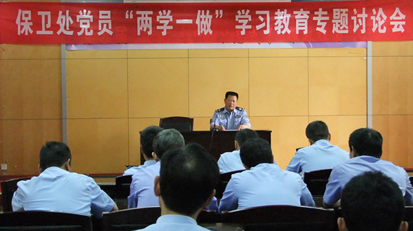 6月7日下午,保卫处党支部在图西会议室召开“坚定理想信念,明确政治方向”专题讨论会。讨论会由党支部宣传委员孙东升主持,党支部书记刘训强发表讲话,保卫处全体在职党员参加了会议。