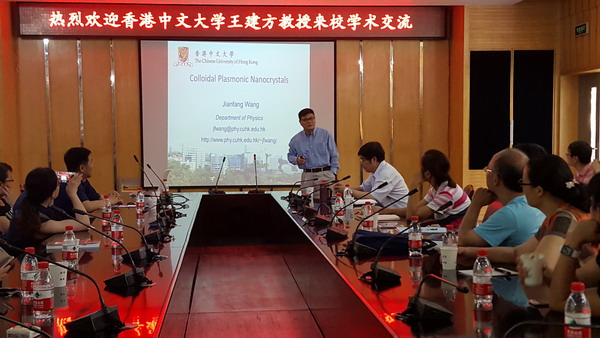 6月17日至19日,香港中文大学王建方教授来校进行学术交流,于17日上午在图北会议室作了《Colloidal Plasmonic Nanocrystals》学术报告。材料学院院长朱金波教授、化工学院院长何杰教授,材料学院、化工学院相关专业教师、学生120余人参加了报告会。报告由朱金波教授和何杰教授主持。