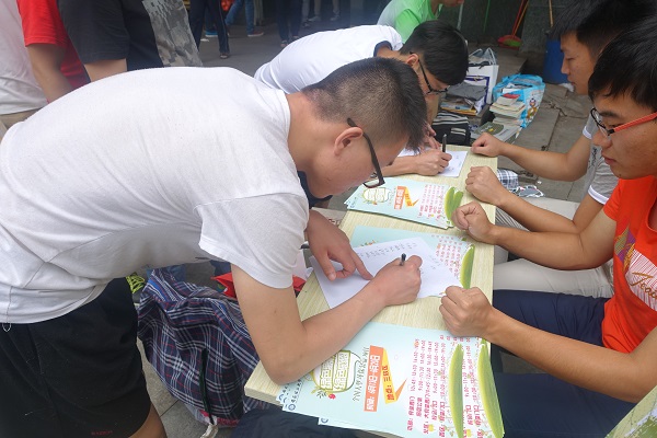 经过之前的精心准备,同学们收集了部分自己的书籍和衣物。中午12点,同学们井然有序地排着队,按次序一一将物品捐赠到志愿者处。临别前夕,同学们都希望将自己的爱心传递下去,为低年级的同学做好表率作用的同时,也呼吁毕业学子文明离校、绿色离校。
