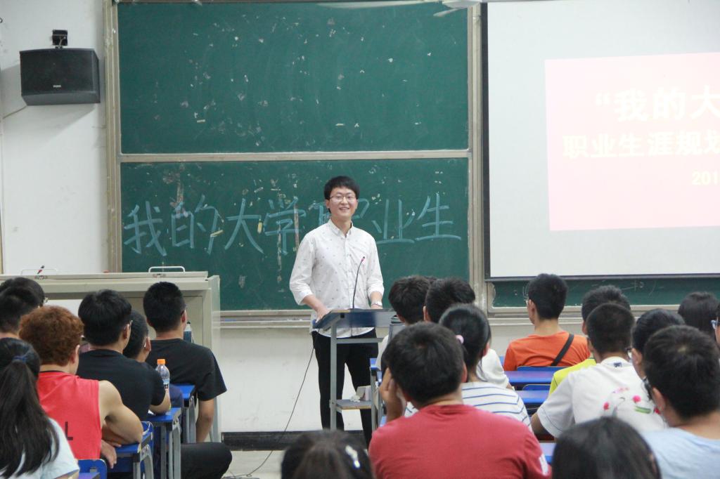 为帮助2015级学生坚定理想信念,认真规划好余下三年大学时光,6月26日,理学院在院二楼报告厅开展“我的大学”职业生涯规划报告会。报告会邀请理学院2016届优秀毕业生王艺腾主讲,2015级150位同学到场聆听。报告会由2015级辅导员王程主持。
