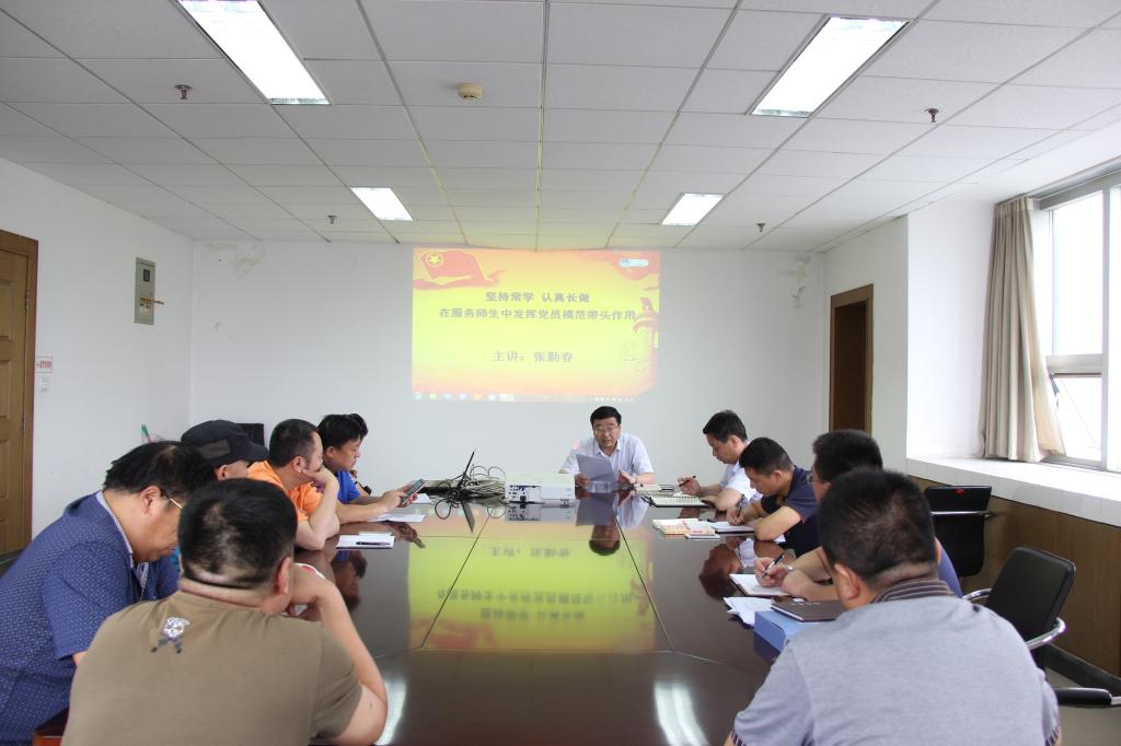 6月15日和27日下午,后勤集团党委书记廖学东、总经理张勤春分别以《扎实开展“两学一做”学习教育,争做“四讲四有”合格党员》和《坚持常学,认真长做,在服务师生中发挥模范带头作用》为题,在所在的机关党支部、饮食配送党支部作专题党课报告。