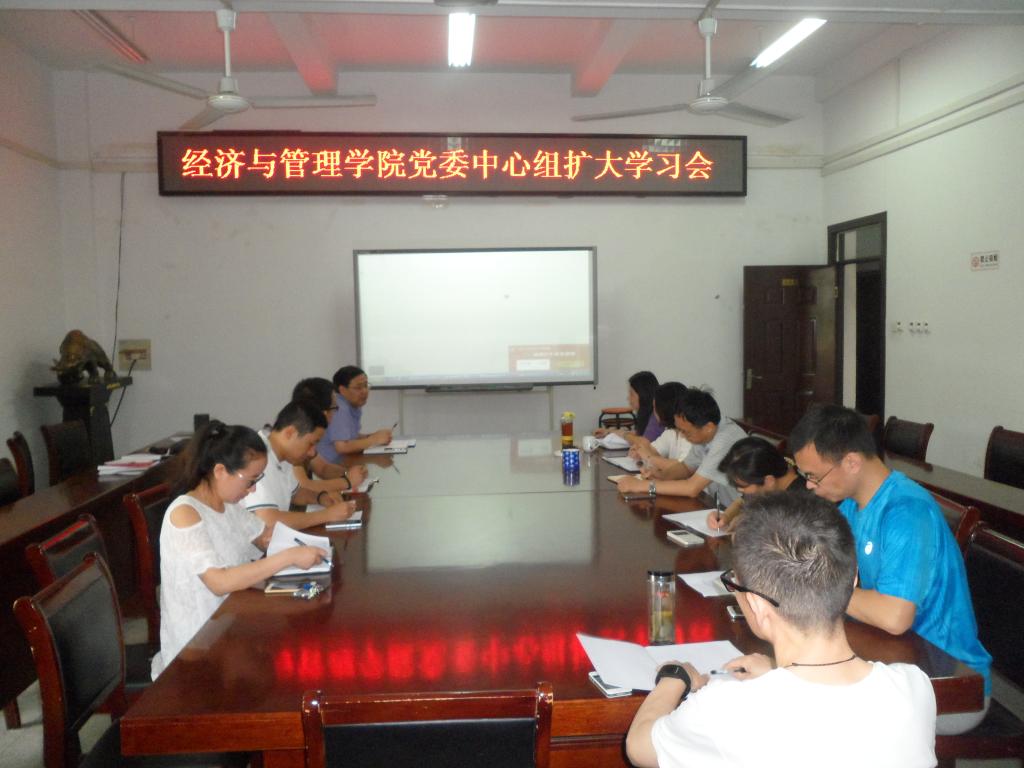 根据“两学一做”学习教育计划,6月27日,经济与管理学院党委在学院三楼会议室召开中心组扩大学习会,专题学习《准则》和《条例》两项党内法规。院党委书记李梁主持会议。学院党委委员、各支部书记参加了会议。