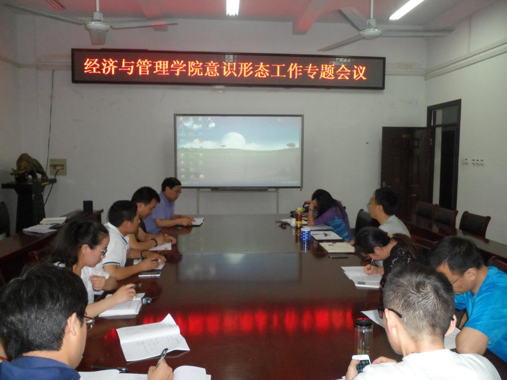 6月27日下午,经济与管理学院党委在学院三楼会议室举行意识形态工作专题会议。学院党委书记李梁主持会议,学院党委委员、各党支部书记和学生辅导员参加会议。