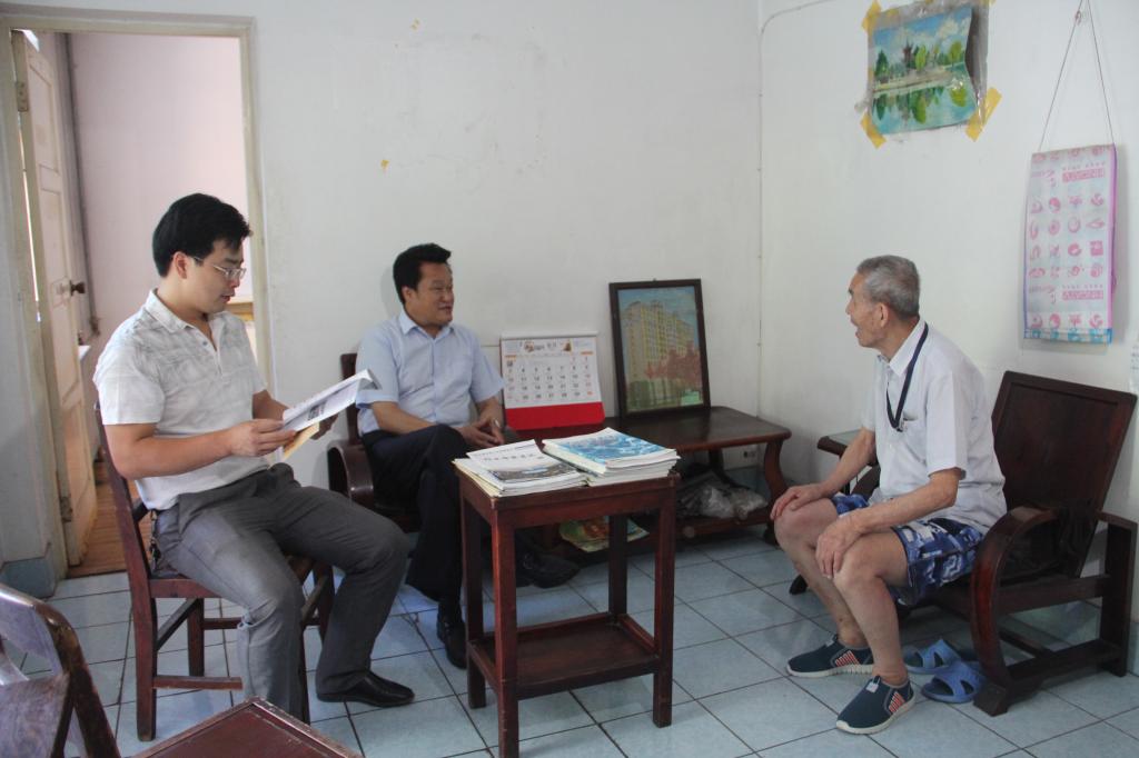 在侴万禧教授家中,盛真一行与他进行了亲切交谈,悉心询问了老人的身体状况,了解他在生活上的困难和需求,并认真听取了他对学校、学院发展的意见和建议。看到老人精神矍铄、身体健康,盛真十分高兴。他说,老党员是党的宝贵财富,为党和人民的事业作出了重要贡献,为学校和学院的建设发展奉献了一生。党和人民不会忘记你们,学校和学院始终牵挂着你们!