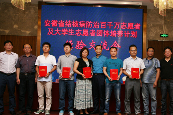 据悉,参加会议的有省内各市及部分县(市、区)结核病健康促进工作负责人、全省32个大学生志愿者培育计划团体负责人、社会团体及优秀志愿者代表等共110余人。会上,安徽省结核病防治研究所对2015年安徽省“百千万志愿者结核病防治知识传播行动”取得突出成绩的40名优秀志愿者、10个优秀志愿者团体和6个优秀志愿者组织进行了表彰,颁发了证书和奖牌。