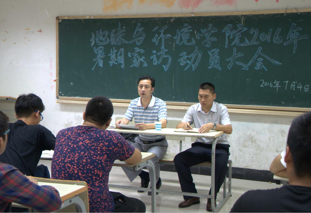 7月4日,地球与环境学院在北区红楼308召开2016年暑期家访动员大会。院党委副书记侯辉主持动员大会,2014、2015级学生辅导员以及2014、2015级主要班级干部参加大会。