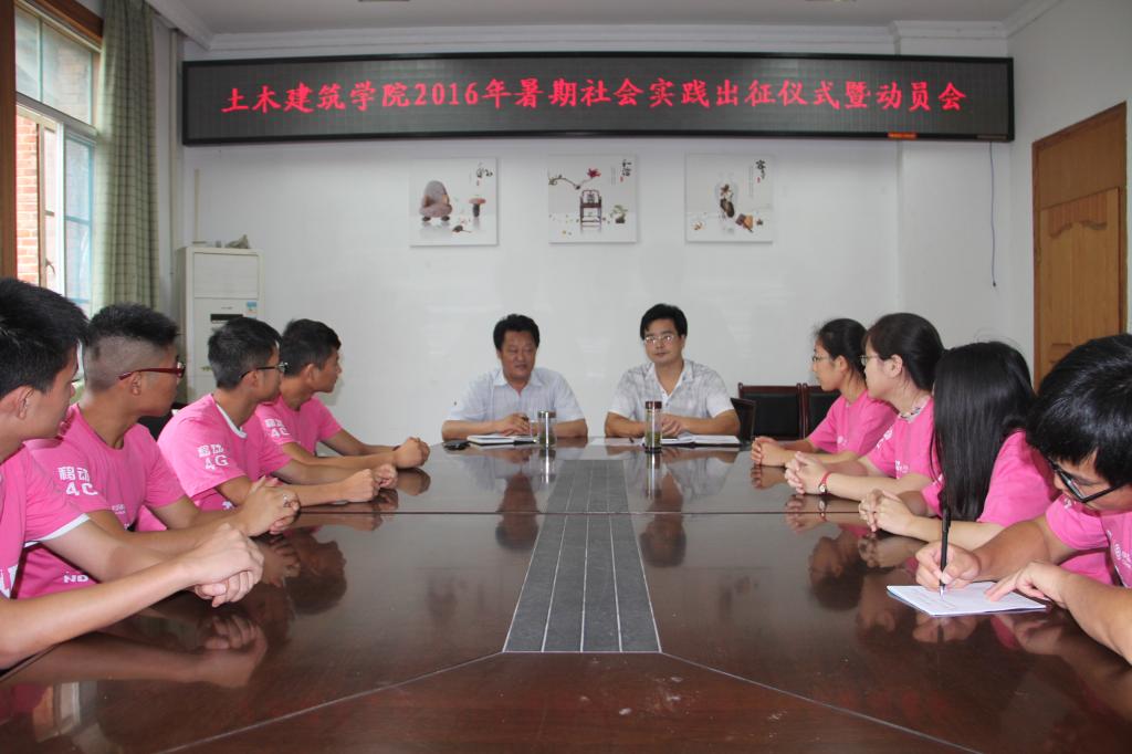 7月5日上午,土木建筑学院在红楼二楼会议室举行2016年暑期“三下乡”社会实践活动出征仪式暨动员会。院党委书记盛真、党委副书记丁志强及学院三下乡团队成员代表参加了会议。会议由丁志强主持。