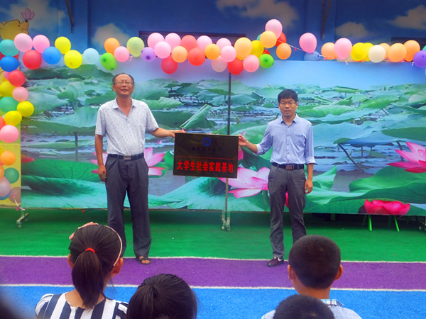 7月16日上午,安徽理工大学电气与信息工程学院大学生社会实践基地挂牌仪式在阜阳颍东区插花镇徐寨小学举行。学院团委副书记孔海棠等师生参加。