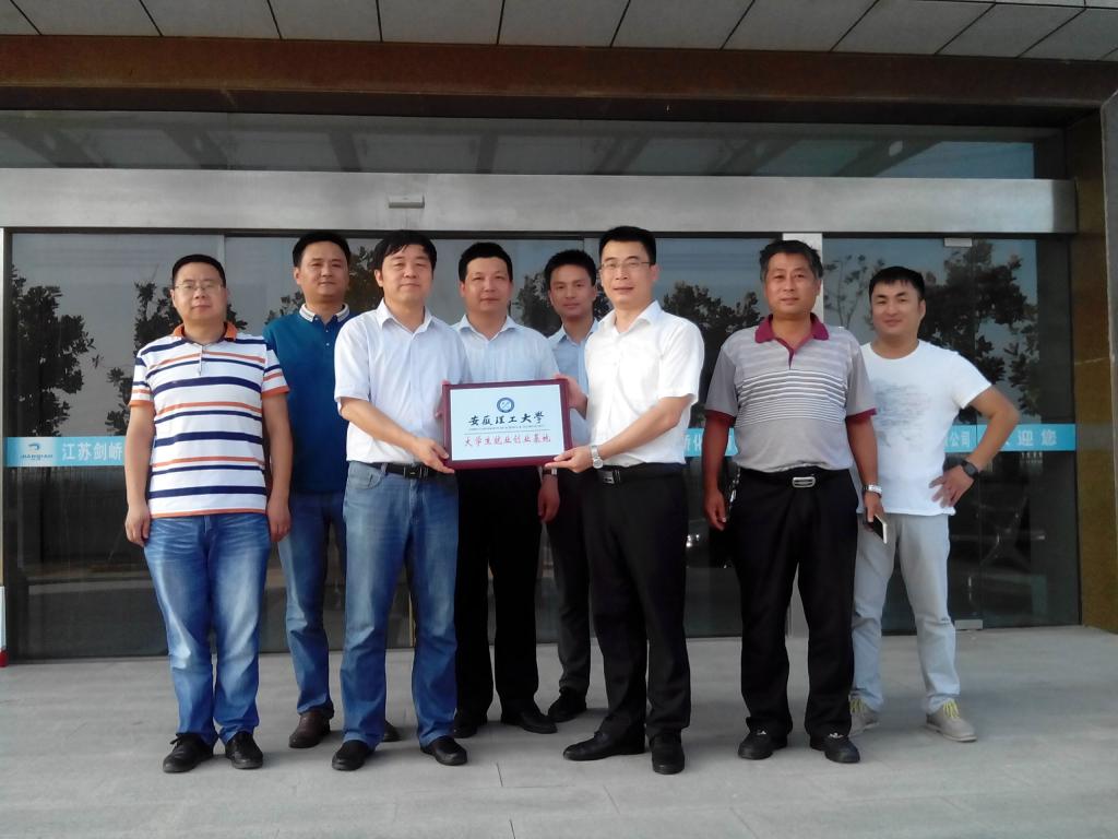 在江苏剑桥化工有限公司,何杰与公司董事长林波签订了毕业生就业创业基地合作协议书,并共同为基地挂牌。