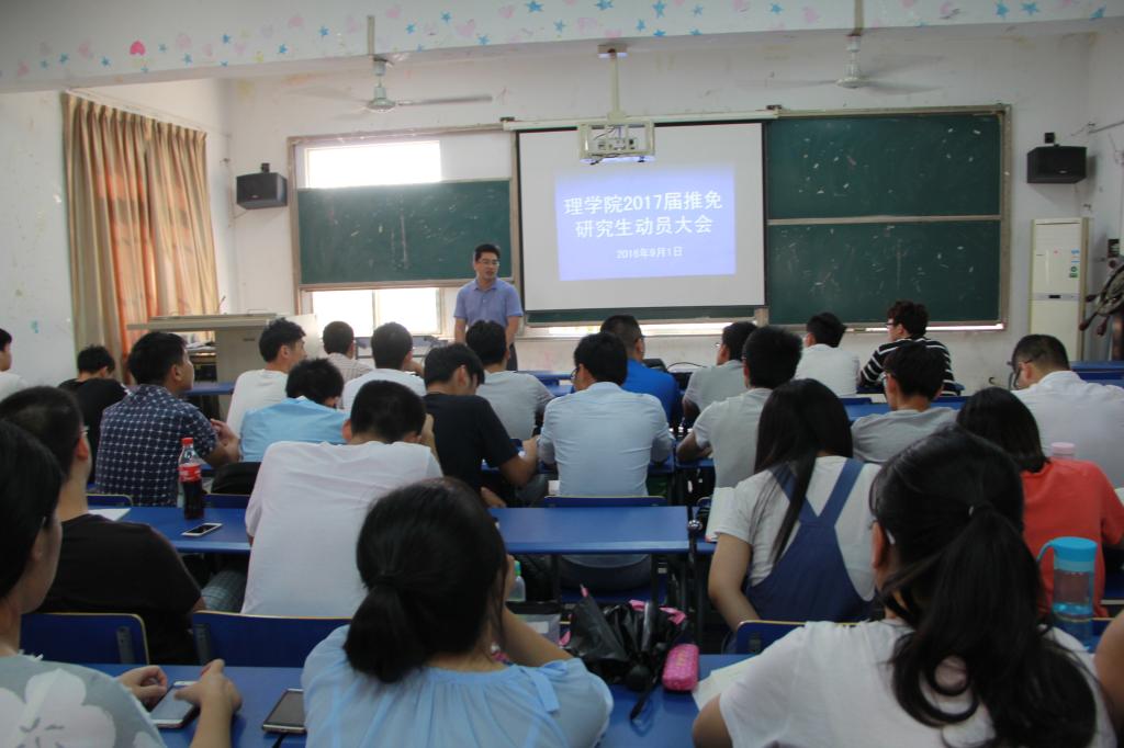 9月1日上午,理学院在学院二楼报告厅召开推免动员大会。副院长方贤文主持大会并作动员讲话。毕业班辅导员及2013级全体毕业生参加了会议。