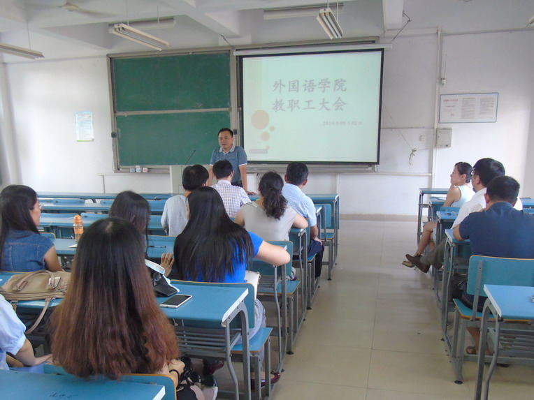 9月2日下午,外国语学院在医教302教室召开全体教职工大会,部署新学期工作。