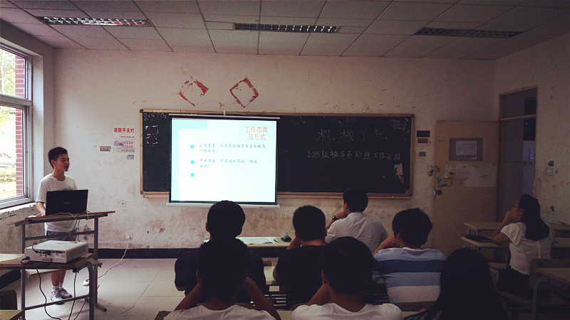 9月12日下午,机械工程学院在北校区红楼107教室开展了2015级辅导员助理工作考核汇报会。学院2015级辅导员、辅导员助理及有关班级学生代表共40余人参加了考核评审会。