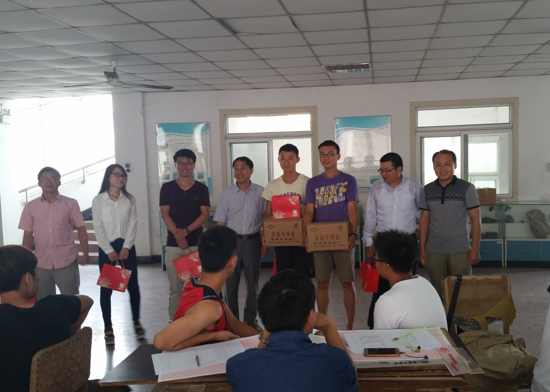 9月14日,在中秋节来临之际,地球与环境学院院长胡友彪一行三人代表学院赴巢湖实习基地,看望正在进行为期4周2014级勘查专业填图实习的师生,并带去慰问品。