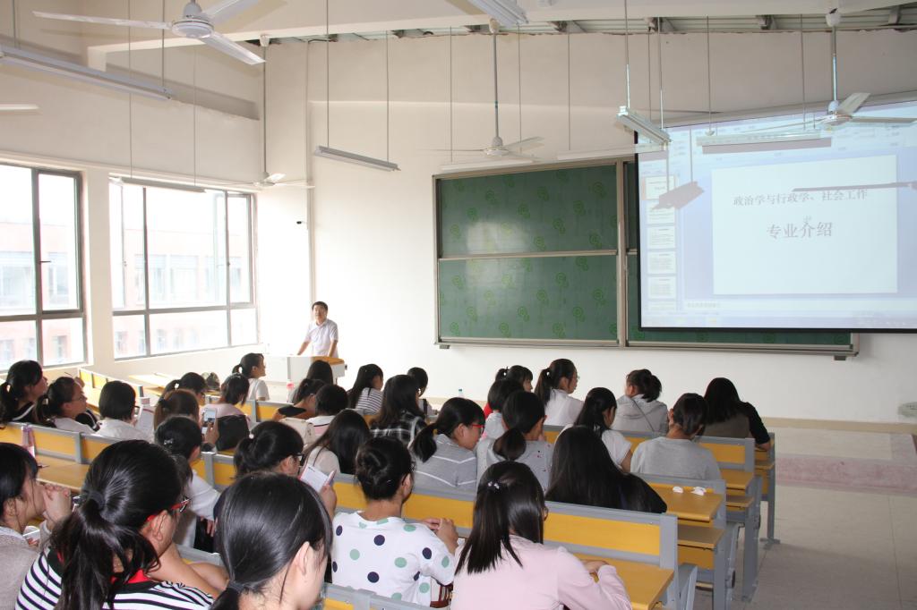 9月21日,人文学院召开迎新大会,学院领导秦朗、杨力、吴云平,办公室工作人员,各系主任,辅导员,班主任来到明理北楼512教室,与2016级全体新生见面,启动新生入学教育活动。