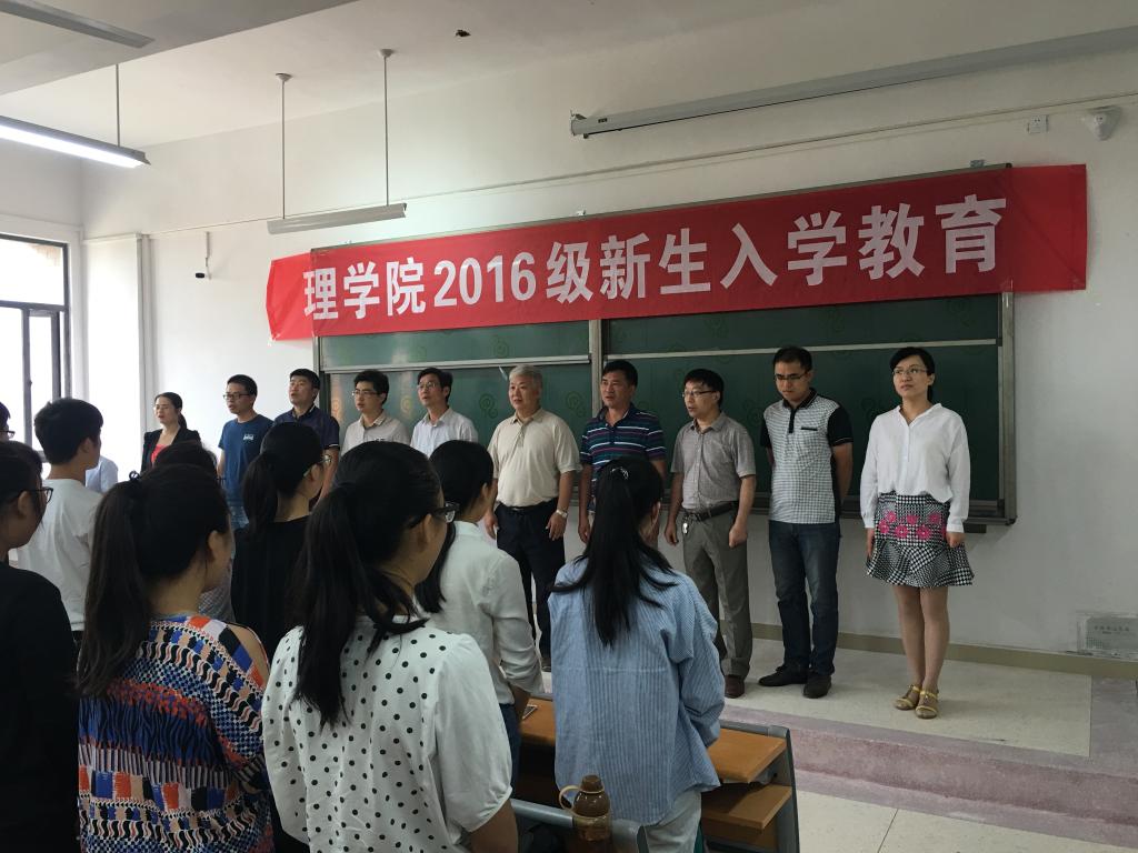 为热烈欢迎2016级新同学的到来,切实做好新生入学教育各项工作,确保新同学尽快适应大学新环境,9月21日上午,理学院在新校区天工南楼406、412室举行新生开学典礼。院党委书记张宣传,院长经来旺,副院长李勇、方贤文,党委副书记张旸,各系主任以及2016级新生辅导员、班主任参加会议。会议由张旸主持。