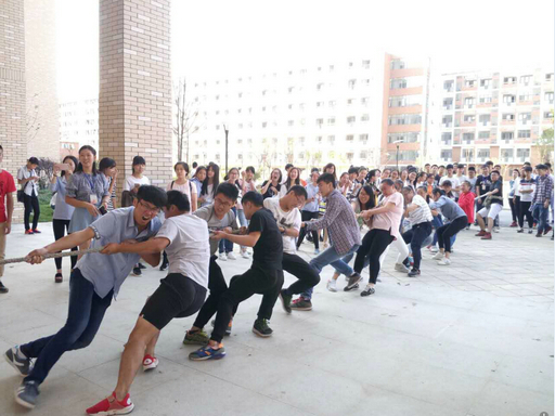 高年级同学带领新生开展拔河比赛活动(摄影:王娟)