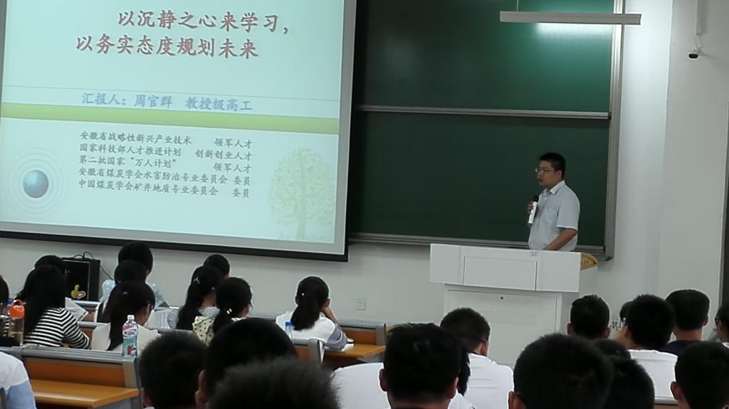 9月25日下午,地球与环境学院邀请优秀校友魏广庆、周官群在新校区天工楼102、201教室为学院2016级新生作了励志报告。学院党委书记盛鹏飞主持报告会。