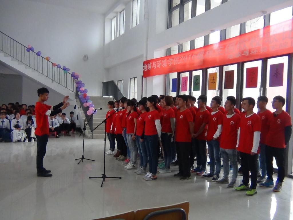 9月29日下午,地球与环境学院在新校区学院楼一楼大厅举办新生班级国歌校歌合唱比赛。学院党委书记盛鹏飞、副院长张平松,以及各年级辅导员、2016级班主任和388名全体新生参加活动。