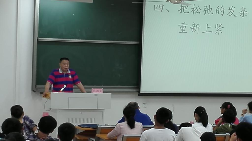 报告会上,周治安结合自己的学习、工作经历,告诫新生们大学期间要善于学习,科学管理时间;要随时记事,养成好习惯;要随时做笔记,多动手,手脑并用。他倡导同学们要建立和谐、合作以及尊师重道是人际交往的准则。