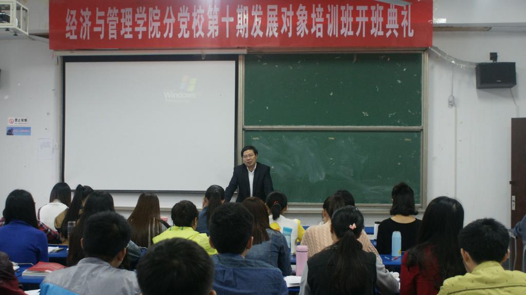 10月22日上午,经济与管理学院分党校第十期发展对象培训班开班典礼在经管楼212教室隆重举行。经管学院党委书记、分党校校长李梁出席开班典礼并作首场专题党课报告。学生党支部书记和培训班全体学员参加了典礼。
