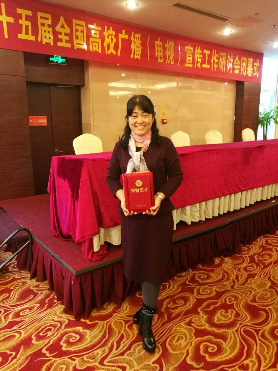 广播站张庆红老师从事校园广播宣传工作31年,几十年如一日,辛勤耕耘,默默奉献,被授予“广播终身成就”奖,全国高校共11位校园广播(电视)工作者获此殊荣。