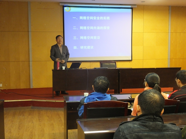 苏金树教授的报告主要阐述了网络空间安全的实践、网络空间内涵的探索、网络空间前沿以及研究的建议四个方面的内容。整场报告会持续了2个多小时,内容丰富,知识前沿,苏金树教授还对现场教师和研究生的提问进行了详细解答。