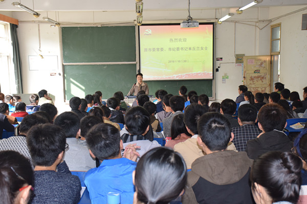 10月30日上午,应机械工程学院关工委的邀请,原淮南市委常委、市纪委书记、市政法委书记、市政协副主席米丘兰女士在北区1105教室为机械工程学院第十三期党员发展对象培训班学员作了依法治国专题报告。报告由学院党委书记张安宁主持。