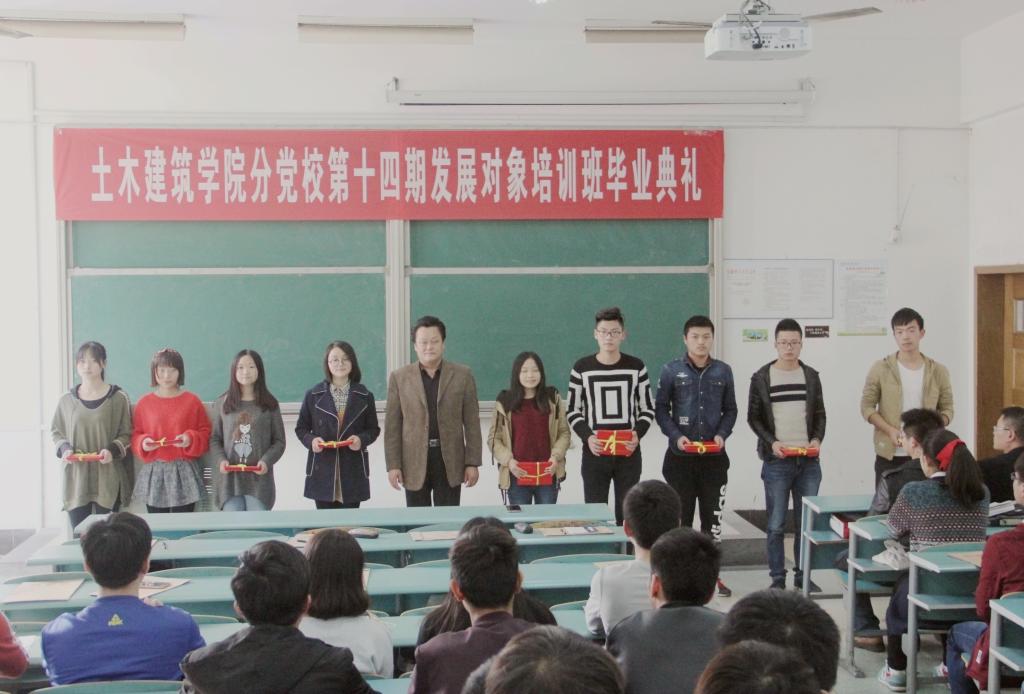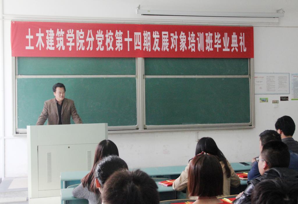 11月4日下午,土木建筑学院分党校在北校区实验楼403教室隆重举行第十四期发展对象培训班毕业典礼。土木建筑学院党委书记、分党校校长盛真,党委副书记、分党校副校长丁志强,学生辅导员和培训合格学员参加了毕业典礼。毕业典礼由丁志强主持。