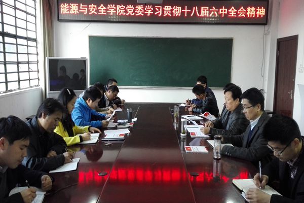 11月11日下午,能源与安全学院在学院214会议室召开党委中心组学习(扩大)会议,专题学习党的十八届六中全会精神。会议由学院党委书记欧阳连勤主持。党委中心组成员、支部书记及部分委员参加了学习。