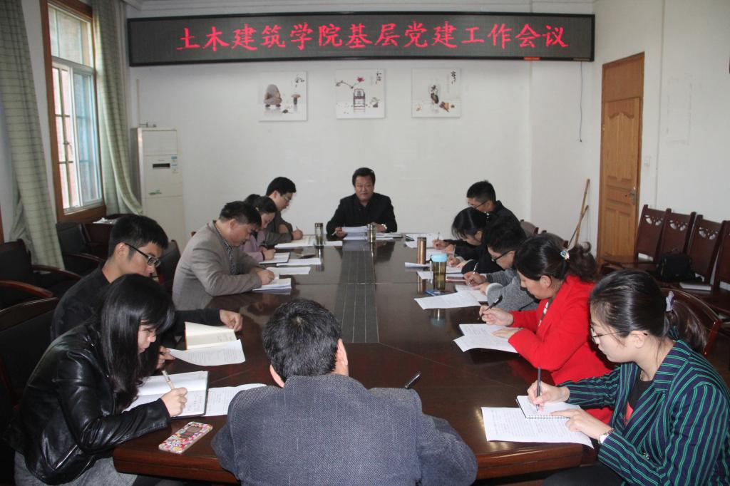 11月15日,土木建筑学院召开基层党建工作会议,就近期党的建设工作作了部署和安排。学院党委书记盛真、各党支部书记参加会议。学院党委副书记丁志强主持会议。