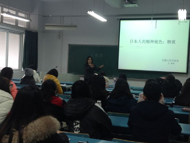 11月25日下午,应校科技产业处和外国语学院的邀请,中国日语教学研究会浙皖赣分会副会长、安徽大学外语学院日语专业硕士生导师王勇萍副教授在西区医教103教室作了题为《日本人的精神底色:物哀》和《日语专业本科生毕业论文写作技巧与方法》的学术讲座。外国语学院日语系主任朱亚青老师主持讲座,日语专业教师及2013级全体学生聆听了讲座。