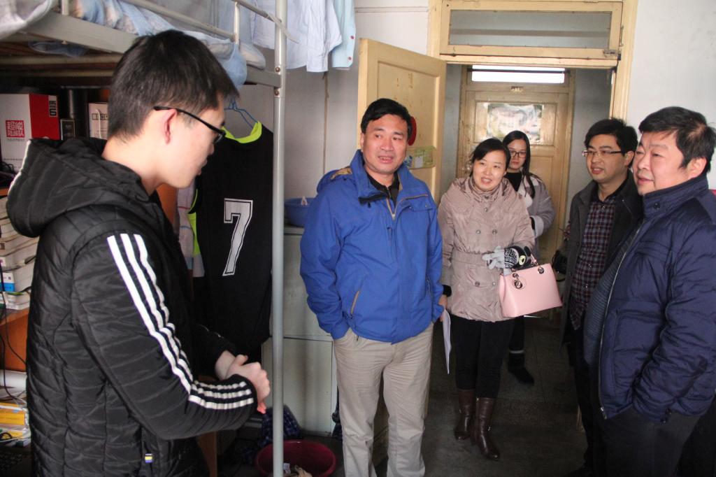 在检查过程中,学院领导对学生们的学习生活等情况进行了细致了解。每到一个寝室,学院领导都会提醒同学们天冷多穿衣,注意寝室卫生,室内要经常通风,不要使用违章电器,注意用电安全等。