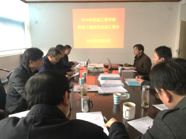 12月5日下午,机械工程学院在学院10楼会议室举行质量工程项目自查汇报会,对2011年以来立项的国家级和省级质量工程项目进行自查。校发展规划处处长殷志祥应邀参加汇报会。汇报会由机械学院院长王传礼主持。