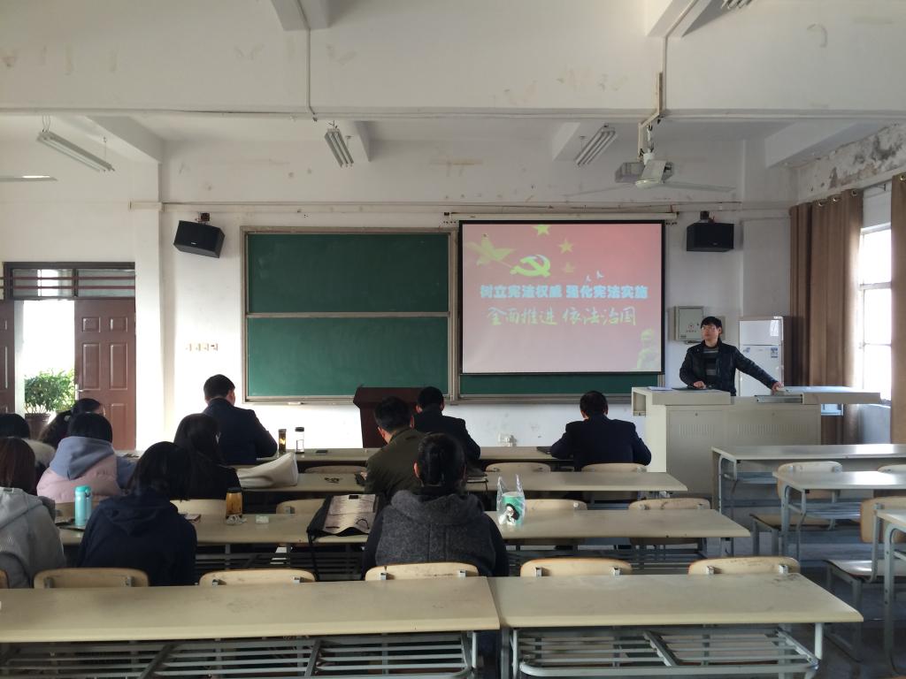 学习会邀请人文素质发展中心主任代大为副教授作了题为《树立宪法权威 强化宪法实施 全面推进依法治国》的学习报告。报告从树立宪法权威的价值、强化宪法实施的任务要求、宪法实施的基本现状与完善路径等三个方面,结合习近平总书记关于依宪治国依宪执政的重要论述,深入阐述了宪法发展和民主法治的世界潮流、实施宪法的前提是坚持党的领导、当代中国宪法实施面临的机遇等内容。学习会促进了学院党员领导干部和一线教职工自觉崇尚宪法、遵守宪法,起到了普及宪法知识、提高宪法意识的良好效果。