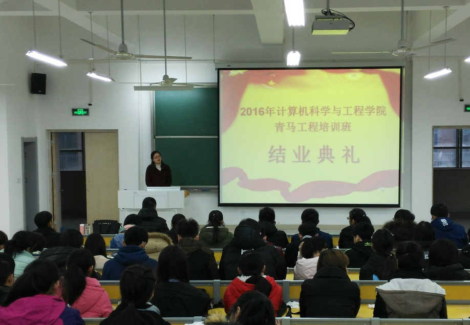 12月11日下午,计算机科学与工程学院2016年青年马克思主义者培养工程暨大学生骨干培训班结业典礼在山南新区天工205教室举行。来自2016级新生班级、院学生会、院研究生会的学生骨干共计149人参加。学院党委副书记蒋群出席结业典礼并讲话。