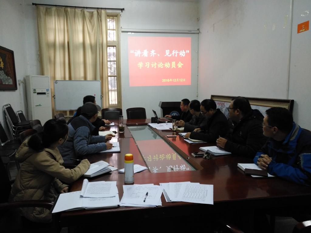 吴军首先带领大家认真学习了《安徽理工大学关于在全校党员干部中开展“讲看齐、见行动”学习讨论实施方案》并传达了学校召开的“讲看齐,见行动”学习讨论动员会精神。就如何组织开展好学院的“讲看齐,见行动”学习研讨活动,吴军强调“讲看齐、见行动”学习讨论活动,是学习贯彻党的十八届六中全会精神的重要内容,是持续深化“两学一做”学习教育的重要举措,根本要求是牢固树立“四个意识”,更加紧密地团结在以习近平同志为核心的党中央周围,更加坚定地维护以习近平同志为核心的党中央权威,更加自觉地在思想上政治上行动上同以习近平同志为核心的党中央保持高度一致。要强化责任担当,推动学习讨论有力有序开展,学院各位领导干部要带头学习研讨,带头查摆剖析问题,带头开展批评和自我批评,带头整改落实,切实做到先学、先查、先整改。学院全体党员干部要切实把思想和行动统一到学校学院党委决策部署上来,确保学习讨论抓实、抓好、抓到位。做到学习讨论与日常工作有机融合、相互促进,用谋发展、抓党建的实践成果来检验学习讨论的实际成效。