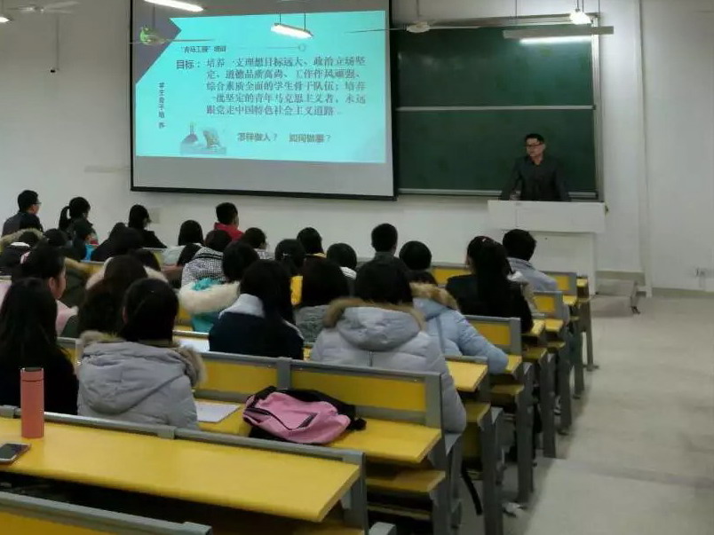 12月8日,受外国语学院邀请,校团委书记赵宁在新校区天工楼103教室为 “青马工程”培训班作专题讲座。学院60名“青马工程”培训班学员聆听了讲座,标志着外国语学院2016年“青马工程”培训班正式开班。