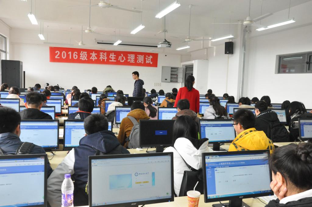 心理测试开始前各班级召开了班会进行了布置宣传动员工作,辅导员、班主任、班级心理委员对心理测试流程、时间、地点等进行了详细说明,向学生介绍测试的方法、结果运用和保密原则。测试在新校区机房统一进行,测试过程中,心理健康教育中心的老师和工作人员为不同批次的参测同学细心讲解注意事项,让学生正确对待心理测试工作,解答各种疑惑,现场秩序井然。测试结束后,心理健康教育中心将对测评结果进行数据分析与处理,为全体2016级新生建立心理健康档案,为后期心理辅导工作的有效开展提供重要的第一手资料。
