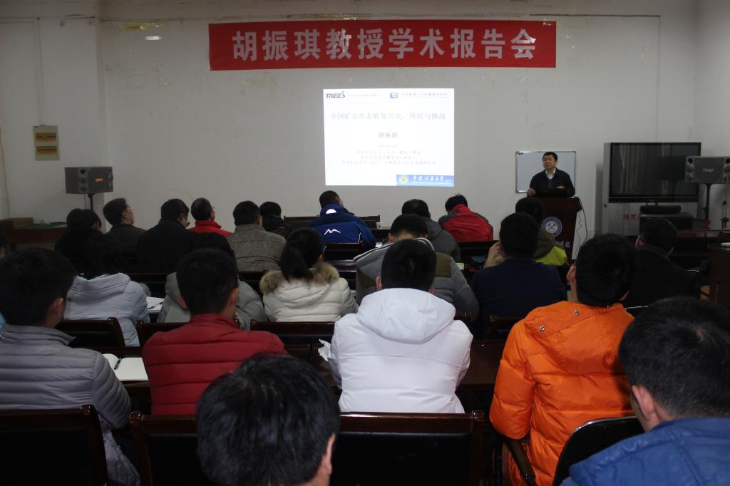 胡振琪教授围绕中国矿山生态修复的历史与现状、中国矿山生态修复的法律基础、中国矿山生态修复的问题与挑战三方面的内容展开。他还与大家分享了自己求学和工作的点点滴滴,以及从事科学研究的经验和心得。报告会结束后,胡振琪与师生就如何申请课题、如何做研究,以及土地复垦中的具体问题进行了热烈讨论。