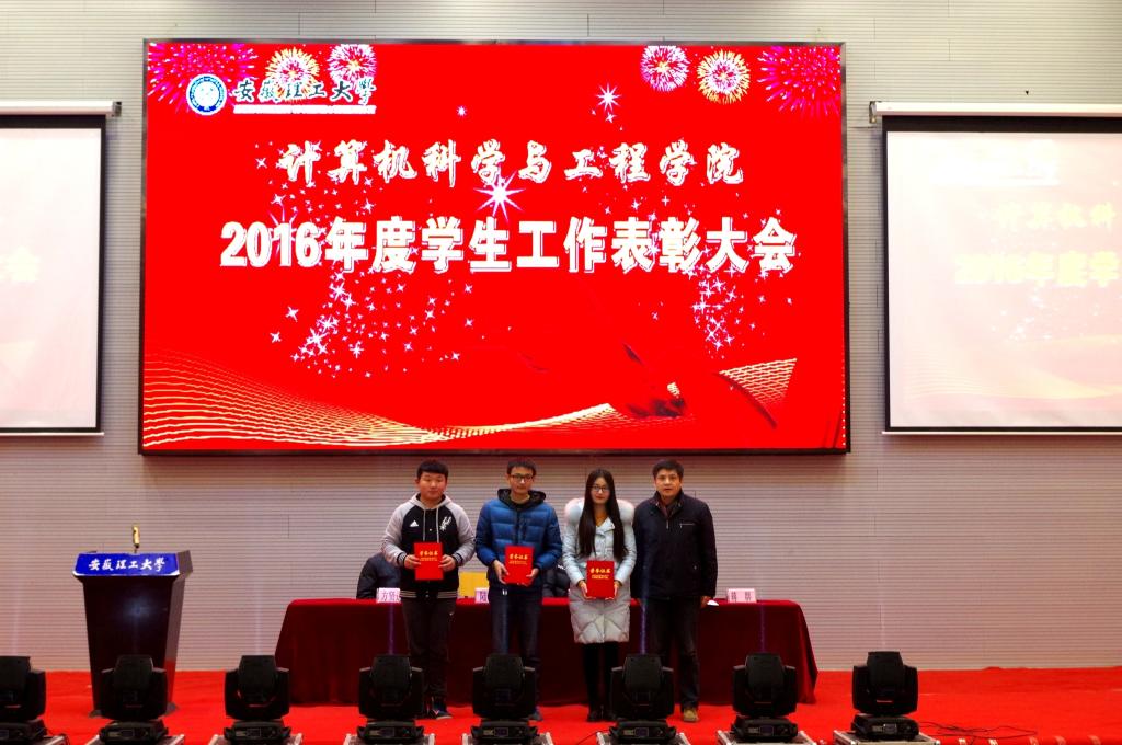 表彰大会由院党委副书记蒋群主持。院长陆奎代表学院致辞,他带领全体师生一同回顾了硕果累累的2016年,并对2017年表达了美好的憧憬与祝福。副院长方贤进宣读了《计算机科学与工程学院关于表彰2016年度学生工作先进集体和先进个人的决定》。先进班级代表计算机15-1班江超、优秀学风寝室代表北12-326寝室佟欣欣、学科竞赛获奖代表许慧勇依次上台发表获奖感言。