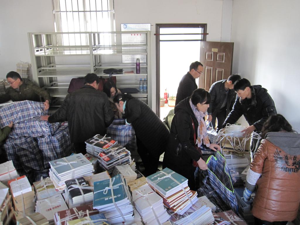 资料室图书整理、打包(摄影:汤传平)