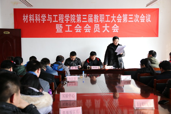 12月30日下午,材料科学与工程学院第三届教职工大会第三次会议暨工会会员大会在学院会议室隆重召开。校工会副主席李颖应邀出席了大会。大会由学院党委书记何昌珏主持。学院全体教职工参加了大会。