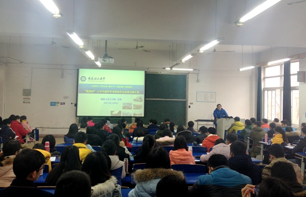 今年1月初,经过赛事组委会项目资格审查、专家书面送审、论文查新查重,共有70件优秀作品成功晋级“挑战杯”校级终审决赛。为进一步提升作品质量,增加各项目团队对决赛进程和相关比赛环节的了解,校团委组织了此次赛前培训。培训会上,金德从“挑战杯”竞赛的概况入手,介绍了学术科技作品竞赛与创业大赛的异同,重点阐述了学术科技作品竞赛的侧重点和相关要求;结合具体的作品和往届获奖的项目,他系统讲解了决赛汇报思路、PPT制作技巧、申报书的撰写规范、路演展板的设计等相关内容。