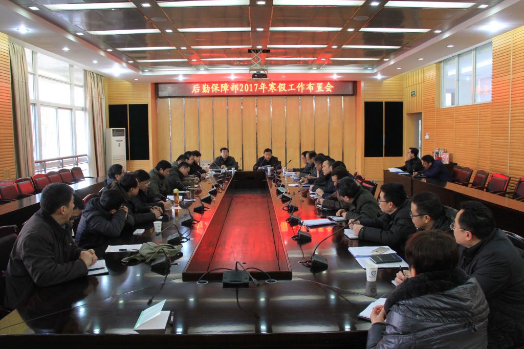 1月20日上午,后勤保障部在校本部图北会议室召开会议,传达学校处级干部会议精神,布置寒假工作。党委书记秦朗、部长张勤春及其他班子成员出席了会议。会议由副部长崔峰主持。