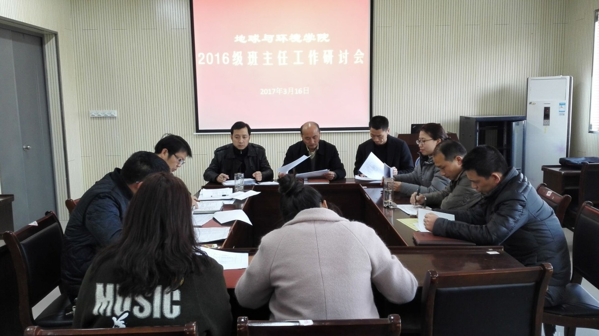 3月20日上午,地球与环境学院在学院404会议室召开2016级班主任工作研讨会。学院党委书记盛鹏飞出席会议。2016级班主任和辅导员参加会议。学院党委副书记侯辉主持会议。