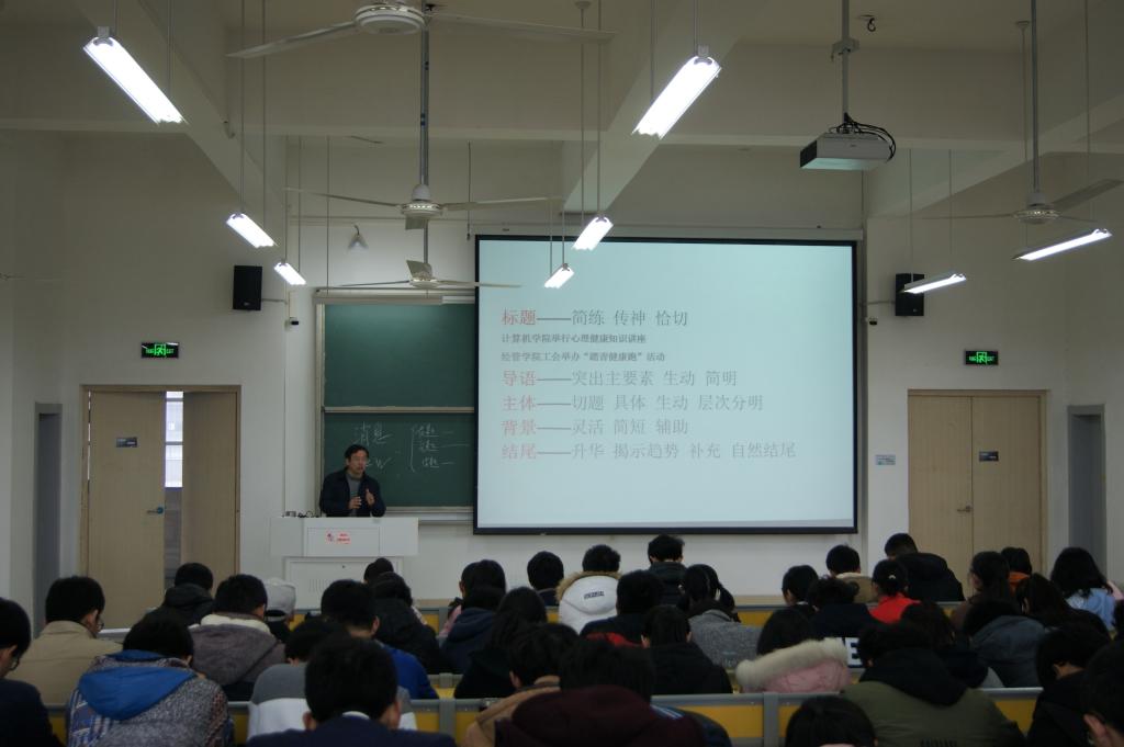 3月25日上午,计算机学院邀请校党委宣传部副部长董淑平老师,在明理205教室开展了一场“新闻业务实务”专题讲座。讲座由院党委副书记蒋群主持,院学生会100余名同学聆听了本次讲座。